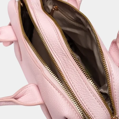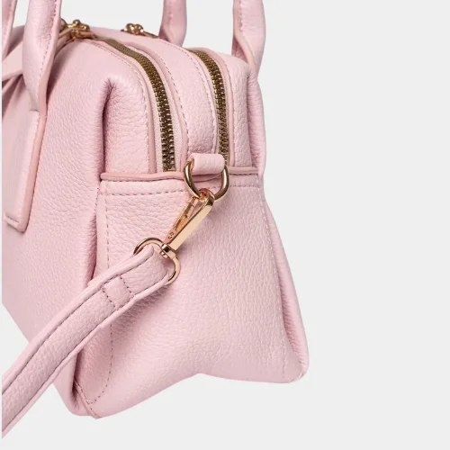 The Camifield Light Pink Shoulder Bag is crafted from faux leather and designed for everyday use. Measuring 30 cm in width, 18 cm in height, and 10 cm in depth, this medium-sized bag does not fit A4 documents. It includes two compartments and interior pockets for organized storage. The bag features a zipper closure, gold-colored fittings, and protective feet at the bottom. The detachable and adjustable strap allows it to be worn over the shoulder or carried by hand. Suitable for women and ideal for year-round use.